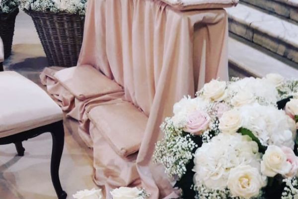 dalla tinta della passatoia e del tappeto, all'inginocchiatoio degli sposi, ai pouf,