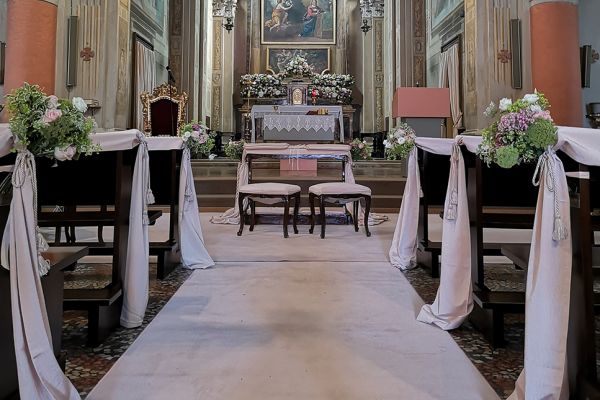 alle sedie dei testimoni, ai cuscini degli invitati, ai rivestimenti delle panche,
